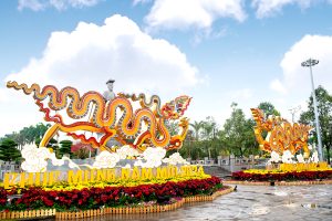 Với chủ đề “Xuân Giáp Thìn 2024”, toàn bộ công viên Nguyễn Văn Cừ được thiết kế và thi công theo lối trang trí đồng bộ, vừa đậm đà bản sắc Tết Việt, vừa mang hơi thở hiện đại của mỹ thuật công cộng.