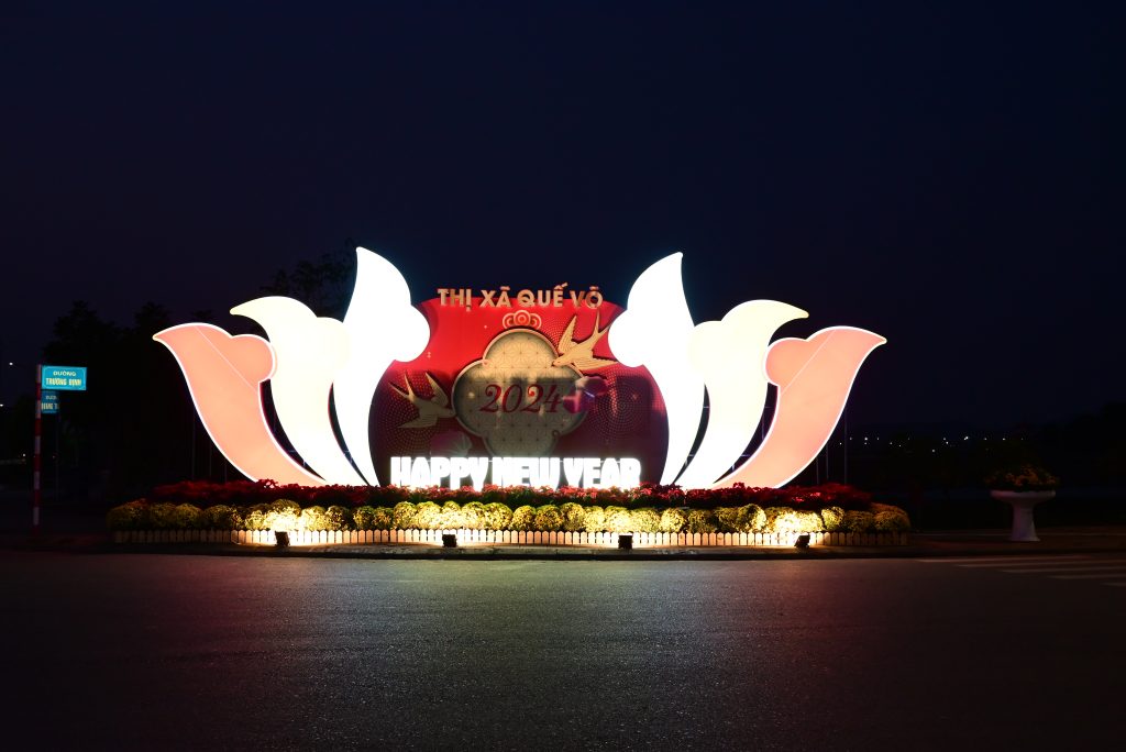 Không khó để bắt gặp những đài hoa sen được đặt tại vị trí trung tâm quảng trường, sân chính khu hành chính, công viên hay đường hoa Tết. Đó có thể là mô hình hoa sen 3D bằng fomex hoặc composite, kết hợp cùng hệ thống ánh sáng LED và hoa trang trí xung quanh. Dù là hình thức nào, đài sen luôn trở thành “điểm lặng” trong dòng chảy sôi động – nơi người dân dừng lại, cảm nhận và ghi hình lại vẻ đẹp ấy.